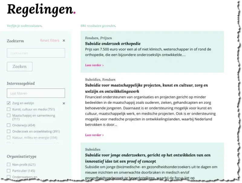 Je kunt subsidies en fondsen selecteren op basis van meerdere selectiecriteria: