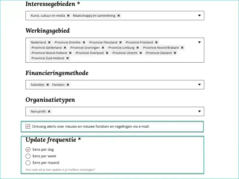 En ontvangt hierna per mail een seintje bij nieuwe subsidies of nieuwe aanvraagperioden.